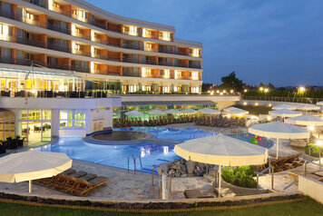 Das Hotel ist das erste und einzige 5★Hotel in Europa, das Ihnen das schwarze Thermomineralwasser auf dem Zimmer bietet. Das Heilwasser wirkt positiv auf den Organismus, denn es beruhigt, tonisiert, erfrischt, verbessert die Durchblutung, lindert Schmerzen und lockert angespannte Nerven. Die 90 Zimmer sind mit einer individuell regelbaren Klimaanlage, Balkon, Kabel-TV, Minibar, Safe und Internetanschluss ausgestattet. Die Einzelzimmer verfügen über eine Massagedusche, die Doppelzimmer haben separate Toiletten und einen Whirlpool, den Sie wahlweise mit schwarzem Thermomineralwasser oder normalem Wasser füllen können.