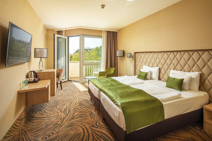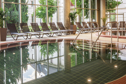 Spa & Wellness: Hoteleigene Bade- und Saunalandschaft, Außen- (28-30°C) und Innenbecken (32-34°C) mit Erlebniselementen, 20 m Sportbecken (26-28°C), zwei Heilwasserbecken (36-38°C) mit eigenem »Greenfield-Heilwasser«, Großzügige Saunalandschaft mit finnischen Saunen, Infrasauna, Bio- und Lichtsauna, Aromasauna, Salzraum mit Solenebel und Salz-Sandkasten, Eisbrunnen, Tauchbecken, Erlebnisdusche.