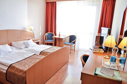 Das Kur- & Wellnesshotel Barátság liegt im Erholungszentrum von Hajdúszoboszló, in ruhiger Lage. Das Kurhotel verfügt über 117 Doppelzimmer. Jedes davon ist mit Bad und Balkon, Sat-TV, Minibar und Telefon ausgestattet.