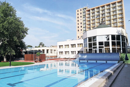 In der Thermalhalle finden Sie zwei Thermalwasserbecken mit Erlebniselementen mit unterschiedlichen Temperaturen (Sprudel, Nackendusche, Rumpfdusche), Gewichtsbad, Kneipp-Kur-Becken machen die Heildienstleistungen wirksamer. Die Infrasauna, Finnische Sauna, Dampfbad und Jacuzzi sichern die angenehme Regeneration und Erfrischung. Alle Behandlungen finden im Hotel statt.