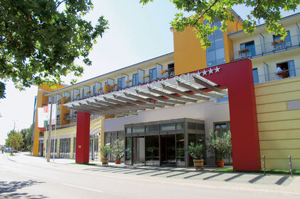 Der 1. Stock des Hotels ist durch eine Brücke mit dem Heil- und Strandbad verbunden. Die Hotelgäste können die Heilbehandlungen im neugebauten Kurzentrum in Anspruch nehmen.