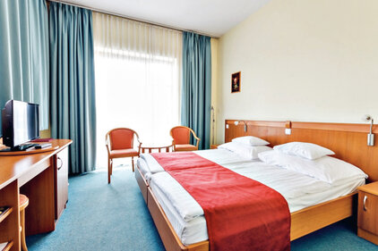 Der 1. Stock des Hotels ist durch eine Brücke mit dem Heil- und Strandbad verbunden. Die Hotelgäste können die Heilbehandlungen im Kurzentrum in Anspruch nehmen.